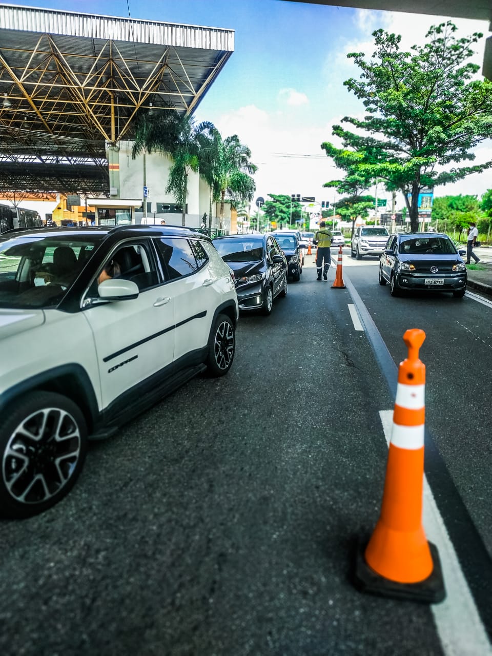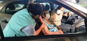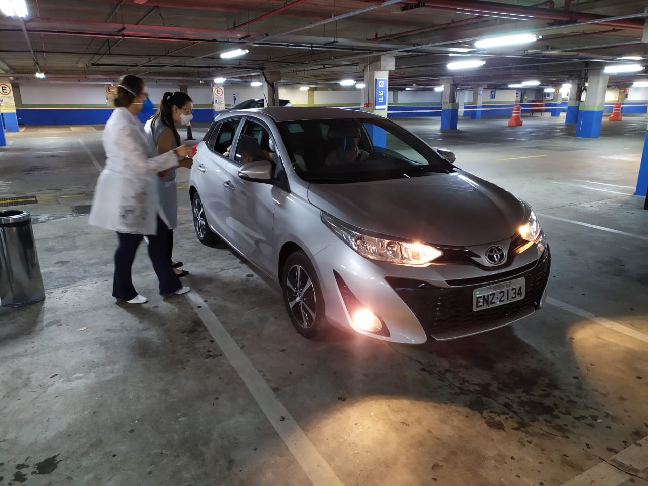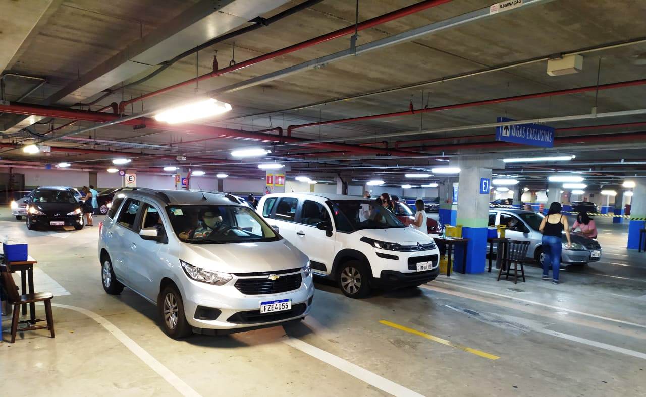 Marcada às 7h, a vacinação por sistema drive-thru, no estacionamento do Bloco B do Shopping Pátio Cianê, começou antes, às 6h30, para não prolongar o tempo de espera dos idosos que já estavam na fila pela vacina.
