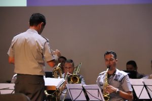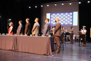 A Banda Regimental do CPI-7 (Comando de Policiamento do Interior), sob a regência do sargento Fabiano, tocou o Hino Nacional e o Hino da cidade de Sorocaba, *cantados pelo aluno da rede pública de ensino, Wiliam Matheus Siqueira Santos*, além de outras canções que antecederam a abertura do evento.