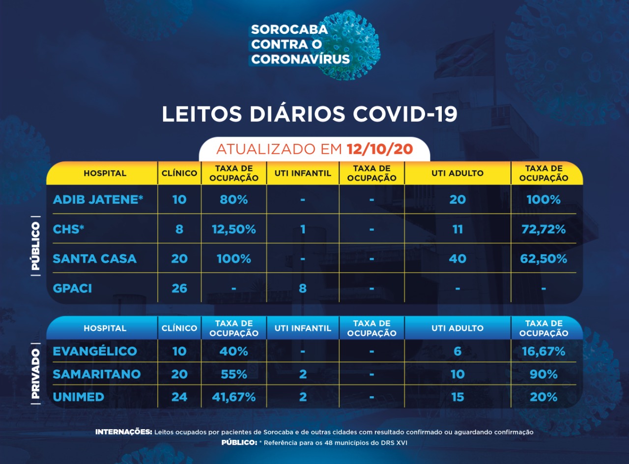 Sorocaba recebeu a notificação de mais sete novos casos confirmados da Covid-19 nesta segunda-feira (12). Do total de confirmados, 46 estão internados (21 em UTI) e o total de pessoas em recuperação (isolamento domiciliar) é 116.