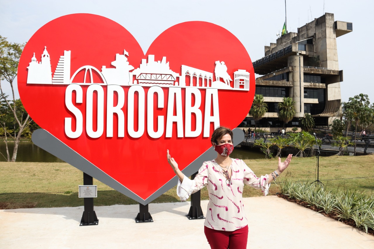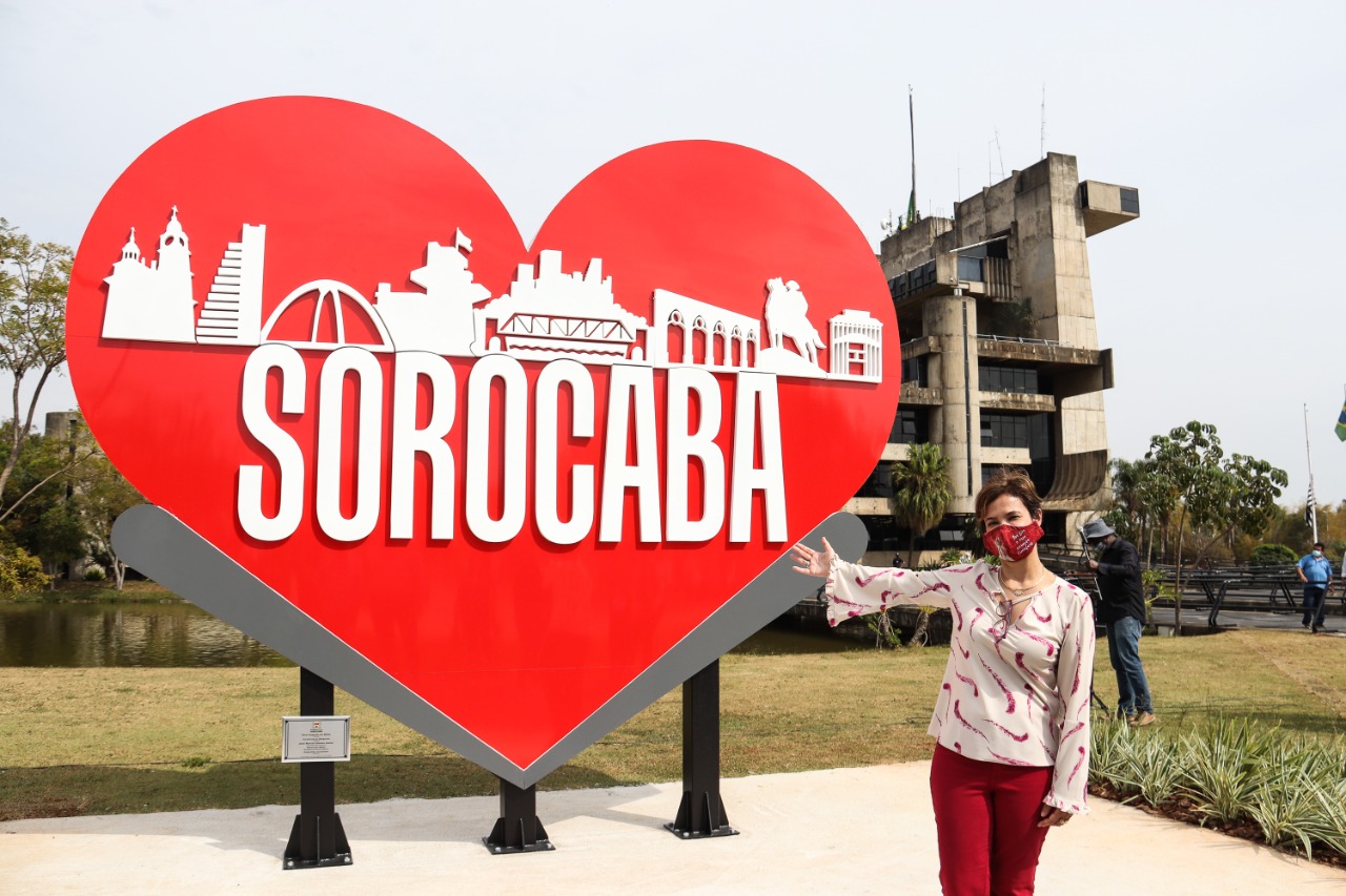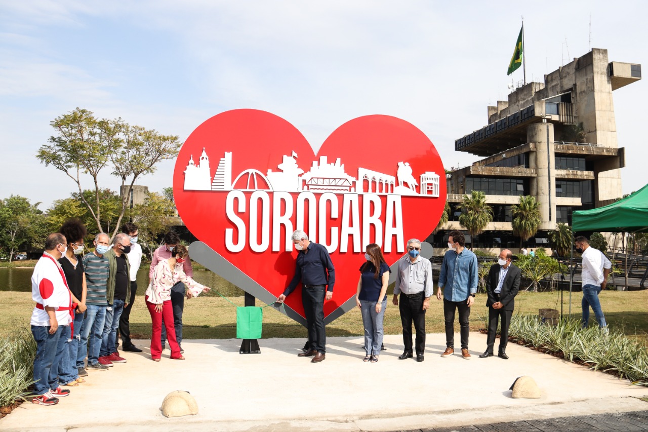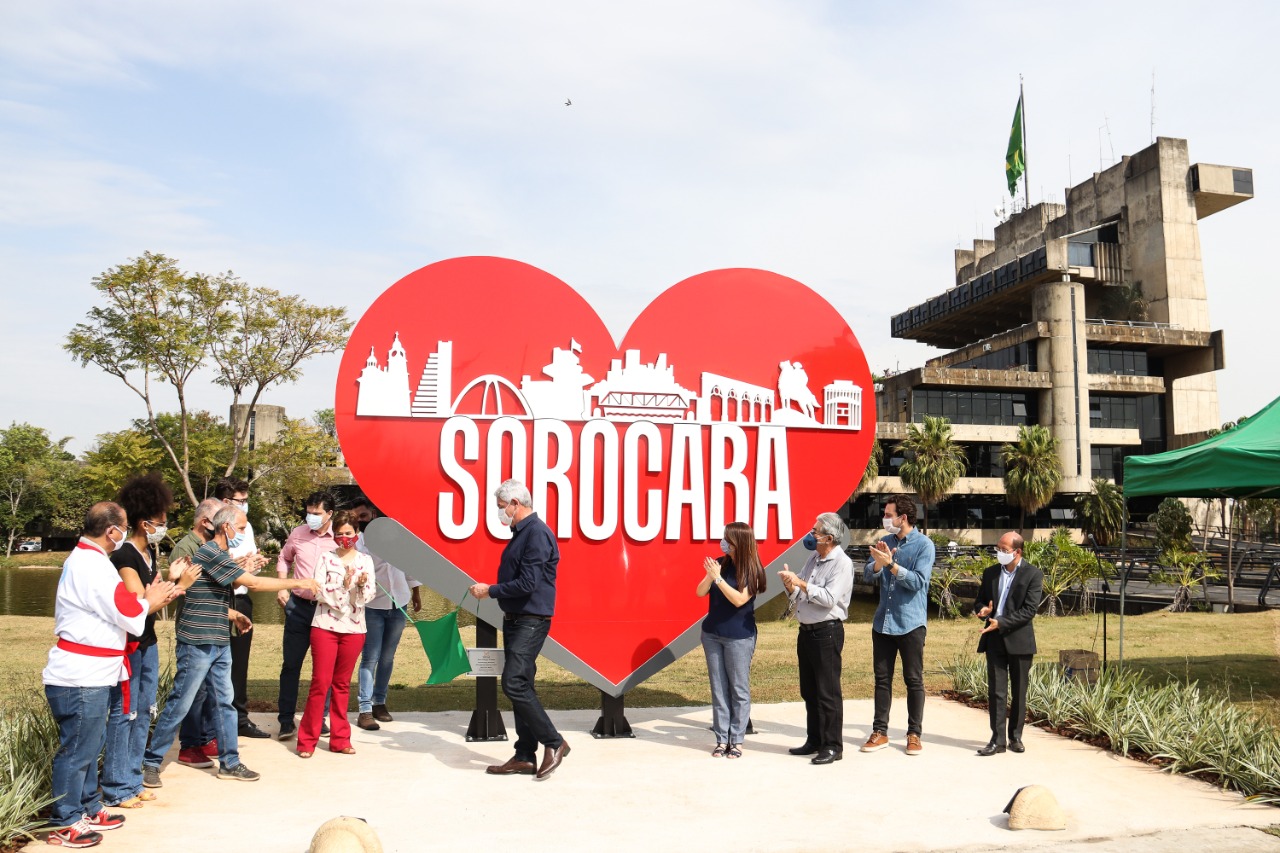 Às vésperas de Sorocaba completar 366 anos de história (15 de agosto), a prefeita Jaqueline Coutinho entregou à população o novo totem com o nome da cidade, que foi doado pela iniciativa privada e instalado em frente ao Paço Municipal, no Alto da Boa Vista. A solenidade ocorreu na manhã desta sexta-feira (14) com a presença de secretários municipais e servidores públicos. Em formato de coração e com as letras formando o nome da cidade na cor branca e em alto-relevo, além da silhueta de prédios conhecidos, como o Paço Municipal, o Jardim Botânico e a famosa “Aranha do Vergueiro”, a estrutura agora é mais uma atração para quem for ao Parque do Paço, inclusive no período noturno, já que o local ganhou uma iluminação especial.