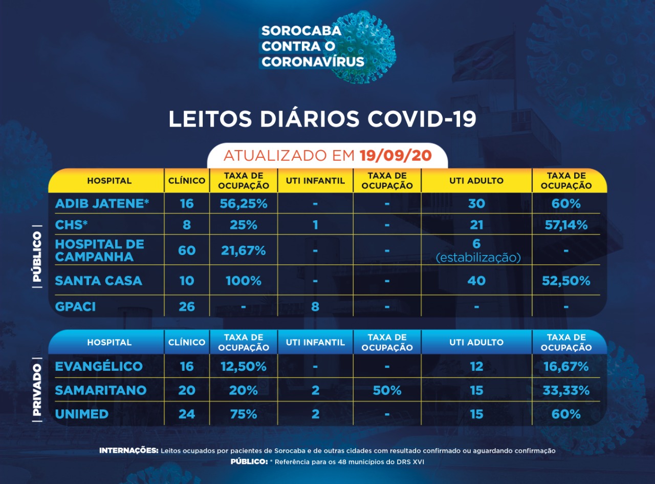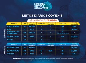 Sorocaba recebeu a notificação de mais 94 novos casos confirmados da Covid-19 neste sábado (19). Do total de confirmados, 44 estão internados (19 em UTI) e o total de pessoas em recuperação (isolamento domiciliar) é 308.