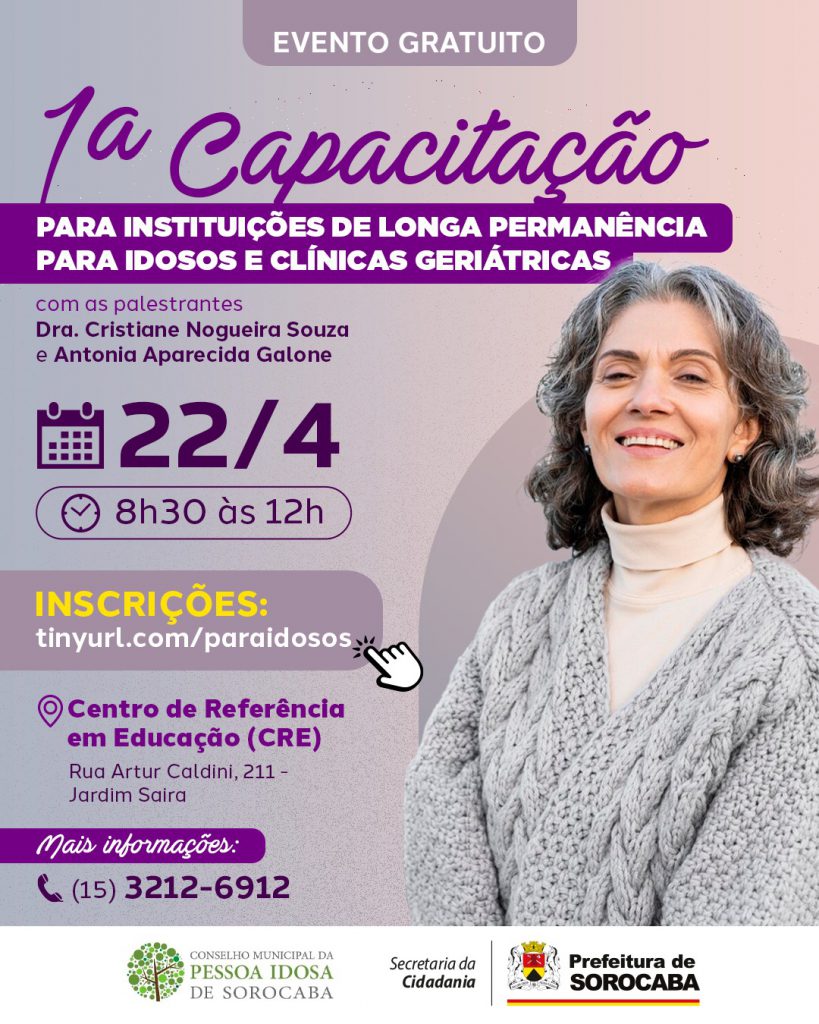 O Conselho Municipal da Pessoa Idosa, com apoio da Prefeitura de Sorocaba, por meio da Coordenadoria da Pessoa Idosa, ligada à Secretaria da Cidadania (Secid), realiza uma formação inédita. Trata-se da 1ª Capacitação para Instituições de Longa Permanência para Idosos (ILPIs) e Clínicas Geriátricas.