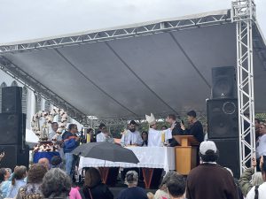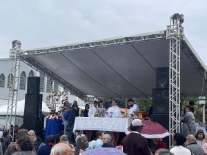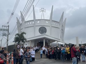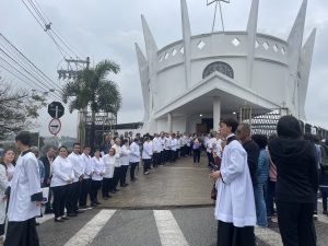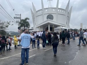 A chuva deste domingo (9), não desanimou os fiéis que aguardavam pela 124ª Romaria de Aparecidinha. De acordo com a organização da romaria, estima-se que perto de 50 mil pessoas participaram do ato religioso, que contou com a tradicional procissão, partindo da Catedral Metropolitana, no Centro.