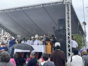 A chegada ao Santuário concluiu o percurso, contando, também, com a celebração da Missa, pelo Arcebispo Dom Júlio. O ato contou com a presença do prefeito Rodrigo Manga, do secretário de Segurança Urbana (Sesu), Alexandre Caixeiro, do Comandante da Guarda Civil Municipal (GCM) de Sorocaba, Davi Dutra, do Comandante Operacional da Corporação, Régis Alonso, e do vereador Fábio Simoa.