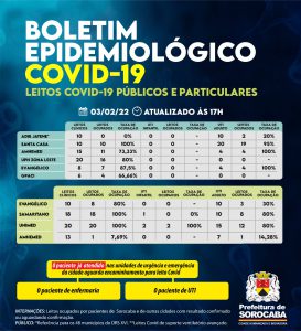 Dos hospitais contratualizados pela Prefeitura de Sorocaba para oferecer leitos Covid, a Santa Casa está com 100% de ocupação nos leitos clínicos Covid. Ou seja, dos 10 existentes, 10 possuem pacientes. A ocupação de UTI Covid da Santa Casa é de 95%, o que representa 19 leitos ocupados dos 20 contratados. Dos seis leitos clínicos Covid do GPACI, quatro estão ocupados. O Hospital Amhemed possui 15 leitos clínicos Covid pactuados e 11 estão ocupados. Já, a UTI do mesmo hospital possui quatro leitos ocupados do total de quatro. No Hospital Evangélico há oito leitos clínicos e sete estão ocupados. Os quatro leitos Covid de UTI encontram-se com 100% de ocupação. Na UPH Zona Leste há 20 leitos clínicos Covid e 16 estão ocupados.