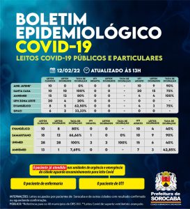 Dos hospitais contratualizados pela Prefeitura de Sorocaba para oferecer leitos Covid, a Santa Casa está com 100% de ocupação nos leitos clínicos Covid. Ou seja, dos 10 existentes, 10 possuem pacientes. A ocupação de UTI Covid da Santa Casa é de 75%, o que representa 15 leitos ocupados dos 20 contratados. Dos seis leitos clínicos Covid do GPACI, dois estão ocupados. O Hospital Amhemed possui 15 leitos clínicos Covid pactuados e 12 estão ocupados. Já, a UTI do mesmo hospital possui quatro leitos ocupados do total de quatro. No Hospital Evangélico há oito leitos clínicos e cinco estão ocupados. Os quatro leitos Covid de UTI encontram-se com 75% de ocupação. Na UPH Zona Leste há 20 leitos clínicos Covid e quatro estão ocupados.