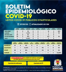 Dos hospitais contratualizados pela Prefeitura de Sorocaba para oferecer leitos Covid, dos seis leitos clínicos Covid do GPACI, um está ocupado. O Hospital Amhemed possui 13 leitos clínicos Covid pactuados e um está ocupado. Entre os quatro leitos de UTI contratados, nenhum está ocupado. Na UPH Zona Leste há 20 leitos clínicos Covid e nenhum está ocupado. O Centro de Estabilização Covid São Guilherme possui 20 leitos clínicos Covid e cinco estão ocupados (25%). Já, os 20 leitos de Suporte Ventilatório Pulmonar (LSVP) encontram-se sem ocupação.