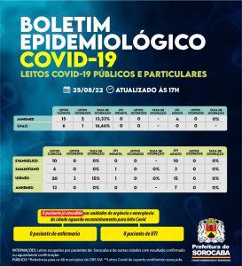 No censo diário de leitos da Covid-19 desta quinta-feira (25) dos hospitais contratualizados pela Prefeitura de Sorocaba para oferecer leitos Covid, o GPACI possui um leito clínico ocupado, dos seis disponibilizados. O Hospital Amhemed possui 15 leitos clínicos Covid pactuados e dois estão ocupados. Entre os quatro leitos de UTI contratados, nenhum está ocupado.