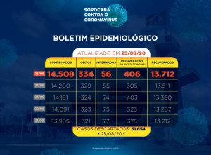 A Prefeitura de Sorocaba, por meio da Secretaria da Saúde (SES), registrou 13.712 recuperados da Covid-19, nesta terça-feira (25). Já os casos confirmados com a doença passaram de 14.200 para 14.508 na cidade. Os óbitos com a confirmação da doença aumentaram para 334.