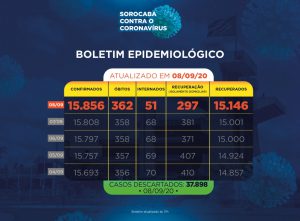A Prefeitura de Sorocaba, por meio da Secretaria da Saúde (SES), registrou 15.146 recuperados da Covid-19, nesta terça-feira (8). Já os casos confirmados com a doença passaram de 15.808 para 15.856 na cidade. Os óbitos com a confirmação da doença aumentaram para 362.