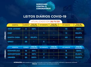 Sorocaba recebeu a notificação de mais 174 novos casos confirmados da Covid-19 nesta quinta-feira (26). Do total de confirmados, 39 estão internados (21 em UTI) e o total de pessoas em recuperação (isolamento domiciliar) é 258.