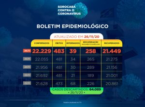 A Prefeitura de Sorocaba, por meio da Secretaria da Saúde (SES), registrou 21.449 recuperados da Covid-19, nesta quinta-feira (26). Já os casos confirmados com a doença passaram de 22.055 para 22.229 na cidade. Os óbitos com a confirmação da doença aumentaram para 483.