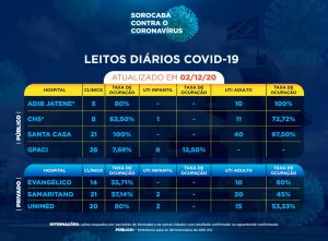 Sorocaba recebeu a notificação de mais 172 novos casos confirmados da Covid-19 nesta quarta-feira (02). Do total de confirmados, 34 estão internados (21 em UTI) e o total de pessoas em recuperação (isolamento domiciliar) é 250.