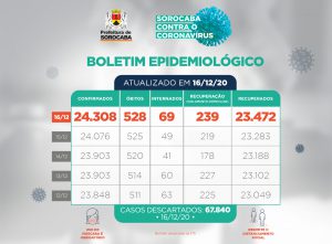 A Prefeitura de Sorocaba, por meio da Secretaria da Saúde (SES), registrou 23.472 recuperados da Covid-19, nesta quarta-feira (16). Já os casos confirmados com a doença passaram de 24.076 para 24.308 na cidade. Os óbitos com a confirmação da doença aumentaram para 528.