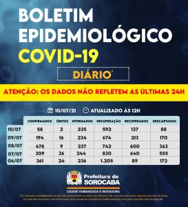 A Prefeitura de Sorocaba, por meio da Secretaria da Saúde (SES), registrou aumento do número de recuperados da Covid-19 neste sábado (10), chegando ao total de 72.301. Já, os casos confirmados com a doença passaram de 75.548 para 75.606 na cidade. Os óbitos confirmados aumentaram para 2.478 e a taxa de letalidade no município é de 3,2%, abaixo da taxa estadual, que é de 3,4%, e acima da taxa nacional, que se encontra em 2,8%.