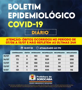 – Mulher de 41 anos, sem comorbidades. Faleceu em hospital público de Sorocaba no dia 15 de julho;