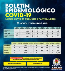 No censo diário de leitos da Covid-19 desta segunda-feira (20), no Hospital Estadual Adib Jatene, os 20 leitos de UTI Covid (Unidade de Terapia Intensiva) encontram-se 70% ocupados. Outro hospital de esfera estadual, o Conjunto Hospitalar de Sorocaba (CHS), possui dois leitos clínicos Covid e dois estão ocupados. O único leito de UTI infantil Covid encontra-se sem paciente. Dos 10 leitos de UTI Covid disponibilizados neste hospital, nove estão ocupados.