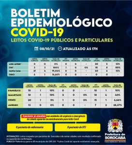 No censo diário de leitos da Covid-19 desta sexta-feira (8), no Hospital Estadual Adib Jatene, os 20 leitos de UTI Covid (Unidade de Terapia Intensiva) encontram-se 15% ocupados. Outro hospital de esfera estadual, o Conjunto Hospitalar de Sorocaba (CHS), possui três leitos clínicos Covid e três estão ocupados. O único leito de UTI infantil Covid encontra-se sem paciente. Dos 10 leitos de UTI Covid disponibilizados neste hospital, oito estão ocupados.