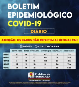 A Prefeitura de Sorocaba, por meio da Secretaria da Saúde (SES), registrou aumento do número de recuperados da Covid-19 neste sábado (9), chegando ao total de 82.482. Já, os casos confirmados com a doença passaram de 85.362 para 85.370 na cidade. Os óbitos confirmados se mantiveram em 2.829. A taxa de letalidade no município é de 3,3%, abaixo da taxa estadual, que é de 3,4%, e acima da taxa nacional, que se encontra em 2,8%.