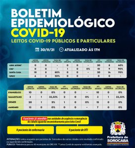 No censo diário de leitos da Covid-19 desta terça-feira (30), no Hospital Estadual Adib Jatene, os 20 leitos de UTI Covid (Unidade de Terapia Intensiva) encontram-se 40% ocupados. Outro hospital de esfera estadual, o Conjunto Hospitalar de Sorocaba (CHS), possui nove leitos de UTI Covid ocupados, dos 10 disponibilizados. O único leito de UTI infantil Covid está sem paciente.