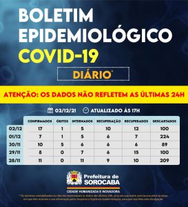Sorocaba recebeu a notificação de mais 17 casos confirmados da Covid-19, 12 recuperados e um óbito, este ocorrido no dia 30 de novembro, mas informado pelo hospital à Vigilância Epidemiológica e computado no dia de hoje (2 de dezembro). Do total de confirmados, cinco estão internados (cinco em UTI) e o total de pessoas em recuperação (isolamento domiciliar) é dez.