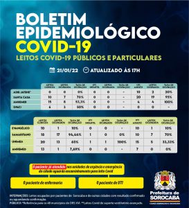 Sorocaba recebeu a notificação de mais 961 casos confirmados da Covid-19, 751 recuperados e quatro óbitos, estes ocorridos desde o dia 17 de janeiro de 2022, mas informados pelo hospitais à Vigilância Epidemiológica e computados no dia de hoje (21 de janeiro). Do total de confirmados, 54 estão internados (31 em UTI) e o total de pessoas em recuperação (isolamento domiciliar) é 480.