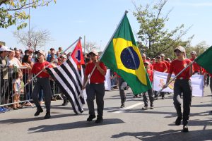 Entre os que desfilaram, foram vários os que fizeram questão de portar com satisfação a bandeira do Brasil, entre eles o atleta amador conhecido como Pedrinho Ironman, que há anos participa de eventos esportivos representando com orgulho o município de Sorocaba.