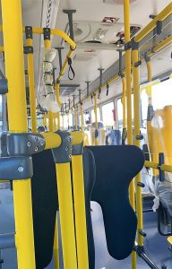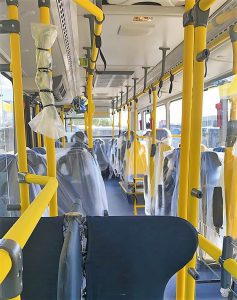 Bancos, balaústres, corrimãos e catracas dos veículos são revestidos com o tecido com fios de poliamida, combinados com outros compostos químicos que impedem microorganismos de se alojarem nas peças. O material consegue inativar o vírus responsável pela Covid-19, em até 1 minuto.