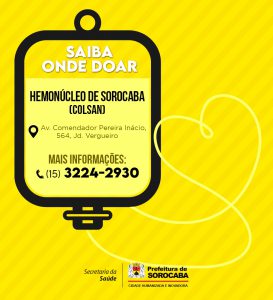 As doações podem ser feitas no Hemonúcleo de Sorocaba (Colsan), que fica localizado na Avenida Comendador Pereira Inácio, 564, Jardim Vergueiro. Para mais informações, basta ligar no telefone: (15) 3224-2930.
