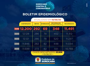 A Prefeitura de Sorocaba, por meio da Secretaria da Saúde (SES), registrou 11.491 recuperados da Covid-19, nesta segunda-feira (10). Já os casos confirmados com a doença passaram de 12.128 para 12.200 na cidade. Os óbitos com a confirmação da doença aumentaram para 292.