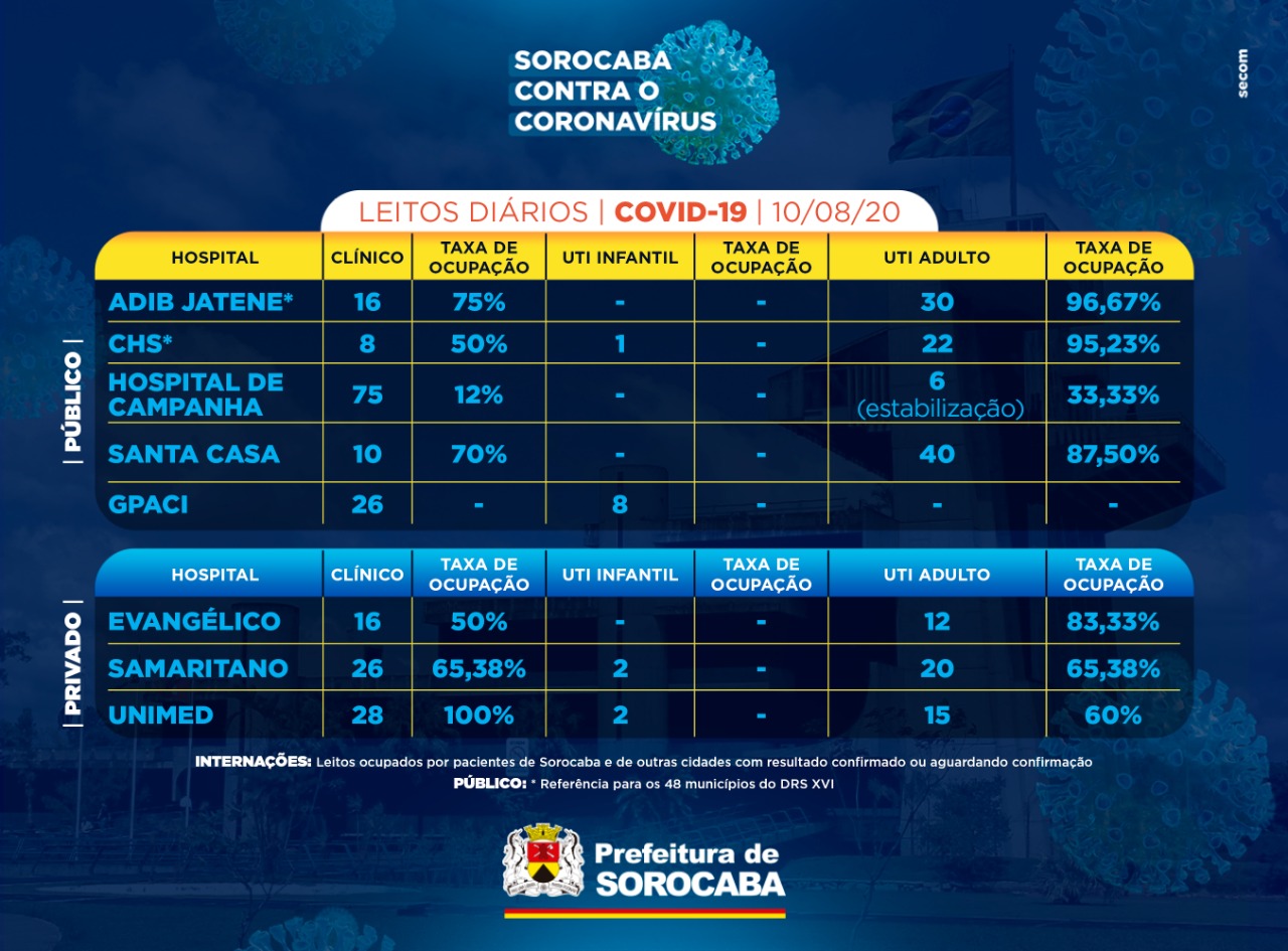 – Homem de 78 anos, cardiopata. Faleceu em hospital público de Sorocaba no dia 8 de agosto;