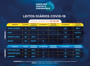 Sorocaba recebeu a notificação de mais 23 novos casos confirmados da Covid-19 neste sábado (31). Do total de confirmados, 45 estão internados (18 em UTI) e o total de pessoas em recuperação (isolamento domiciliar) é 210.