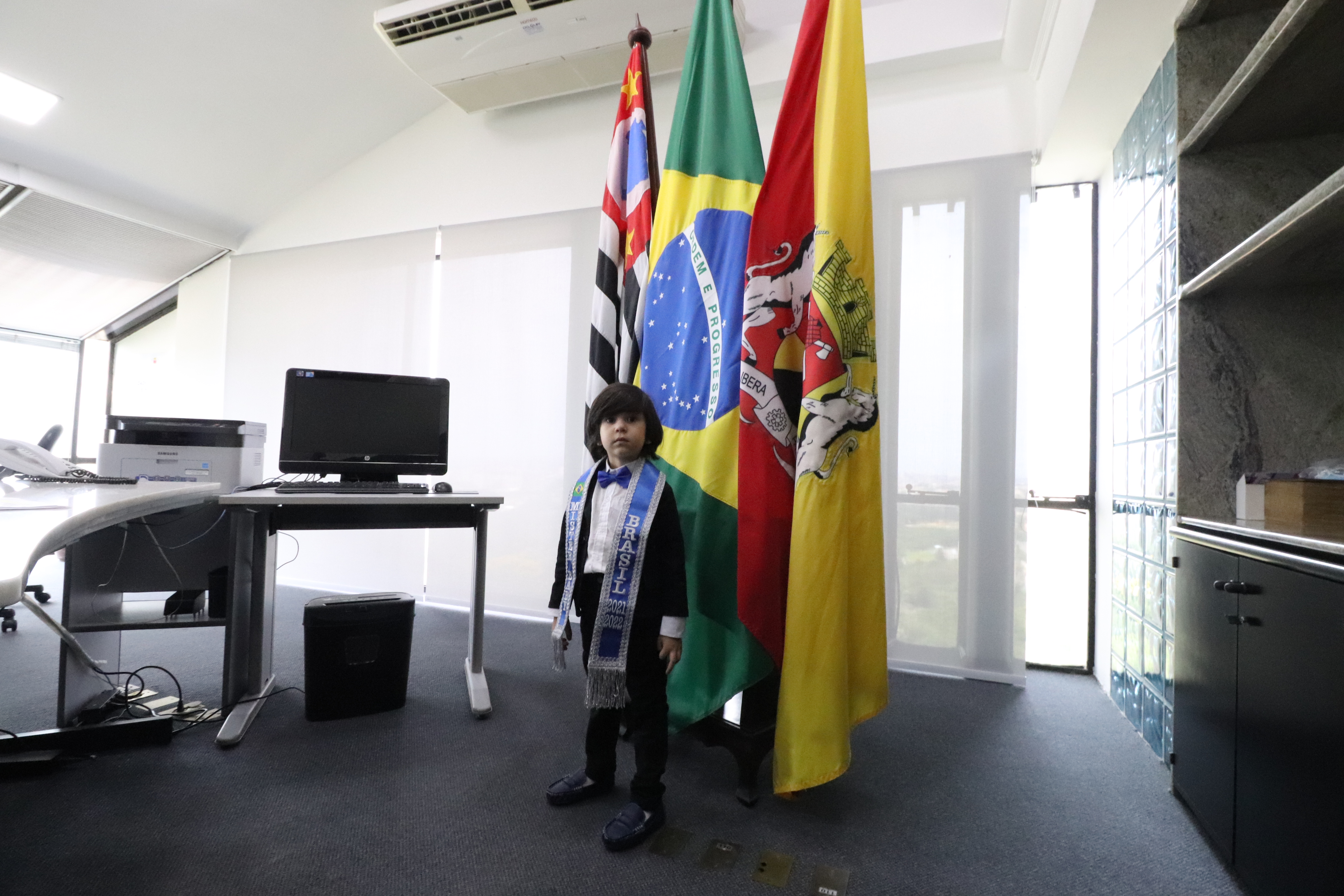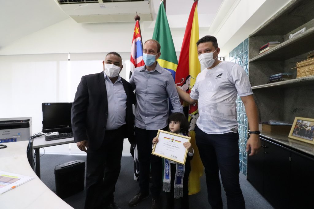O pequeno Vitor Rodrigo Lima Barreto, de 4 anos, recém-eleito Mister Brasil Baby 2022, acompanhado de sua mãe, a empresária Tábita Lima, moradores do Jardim Prestes de Barros, foi recebido, na manhã desta quarta-feira (22), pelo prefeito Rodrigo Manga, no sexto andar do Paço Municipal, ao lado do presidente da Câmara Municipal, Cláudio Sorocaba, e do vereador Cristiano Passos.