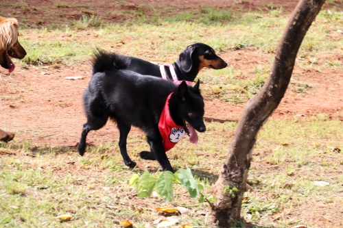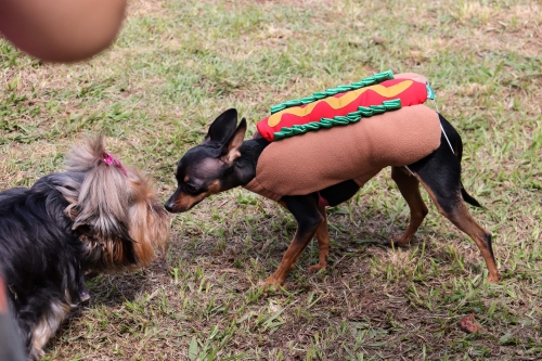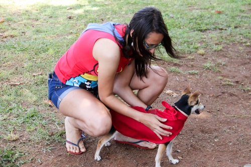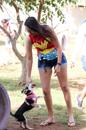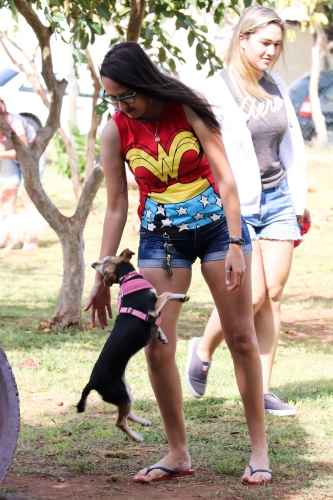 Frequentadoras do espaço, Isabela Fernanda Santos e Paloma Martinelli levaram suas Lolas para a brincadeira no parque. A pinscher de Fernanda usou uma fantasia de hot-dog, enquanto a outra Lola fez par com a tutora, ao estilo super-heroínas. “O lugar é ideal para que ela se socialize e gaste um pouco de energia”, comentou Paloma já indicando que sua cachorra de apenas dez meses tem se saído muito bem no quesito interação com outros animais.