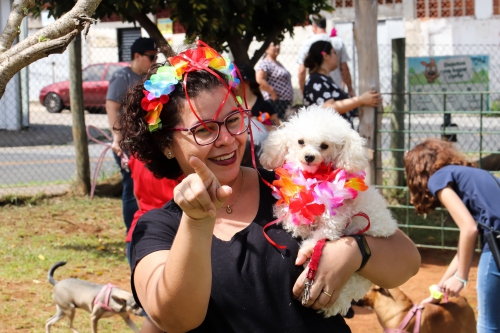 Tal mãe, tal filha. Assim Eliane Bezerra da Silva, de Sumaré, definiu a fantasia adereçada que resolveu levar para a passarela do cachorródromo. Em visita à cunhada que reside na cidade, ela fez o filho e a nora acordarem mais cedo neste domingo para acompanhar a ela e Amora, uma poodle pequenina, na festa pra cachorrada. “Eu entrei na internet para procurar o que tinha de carnaval na cidade e achei o Pet Folia. Na hora já avisei, é lá que nós vamos”, contou dizendo que gostou muito não só do espaço da turminha patinhas, mas do parque de um modo geral.