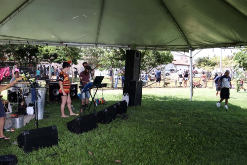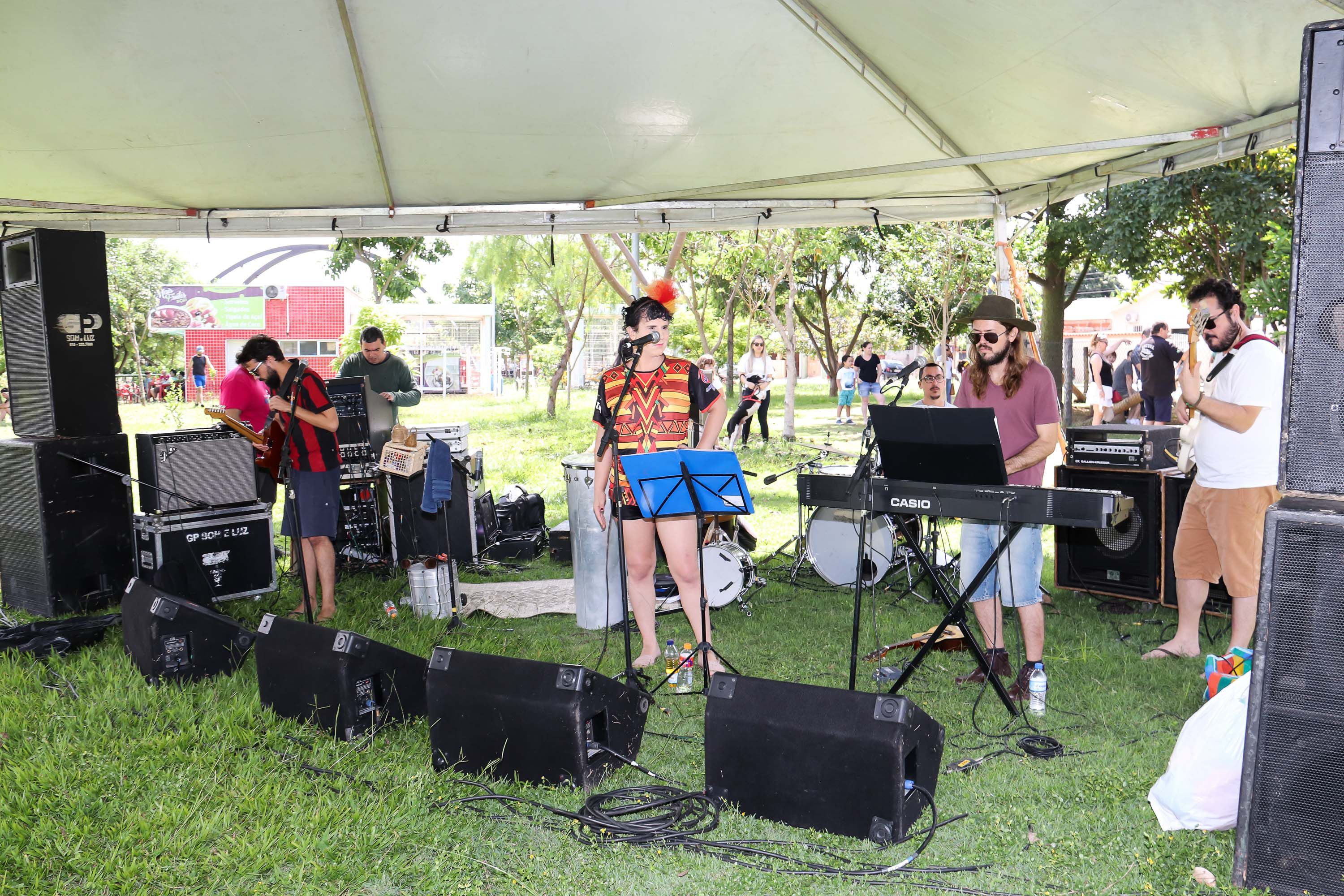 Apesar de o espaço ser destinado aos peludos, que correram e brincaram por todo lado, tutores e pessoas que circularam pelo local dançaram e cantaram ao som de banda musical.