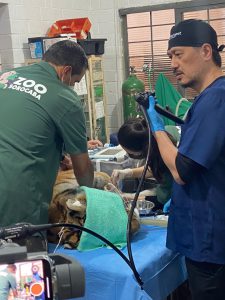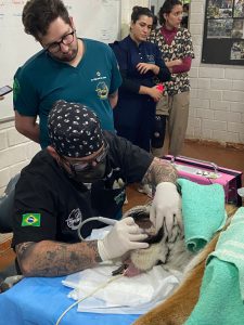 Uma equipe de especialistas, formada pelos médicos veterinários do Zoológico de Sorocaba e voluntários, se reuniu para que a checagem do animal fosse realizada de maneira completa. O manejo também contou com a participação do médico veterinário mexicano Enrique Yarto, especialista em animais selvagens.