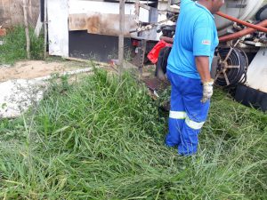 As intervenções executadas contaram com a utilização de um caminhão-bomba, próprio para esse tipo de manutenção e, por meio dele, todos os poços de visitas (tampões) existentes ao longo do emissário de esgoto foram vistoriados, com a introdução de uma mangueira na tubulação, que realizava jatos de água com forte pressão dentro do emissário, possibilitando que os materiais que causavam a obstrução fossem removidos ou dissolvidos.