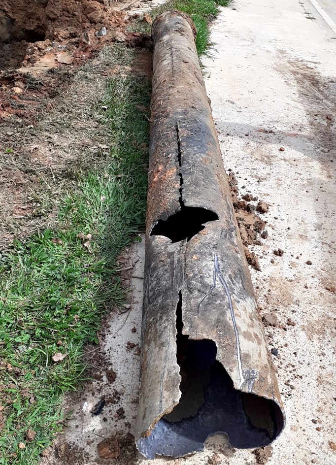 No total, foram substituídos 42 metros da rede de recalque que apresentou corrosão, com a utilização de sete barras de 6 metros cada, em ferro fundido, de 400 milímetros de diâmetro, permitindo que logo em seguida a estação de bombeamento retornasse as duas operações.