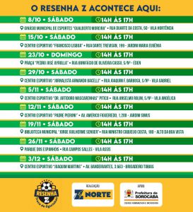 Mais oito edições do Resenha Z estão programadas até dezembro, sempre nos fins de semana, em prédios públicos administrados pela Sequav e pela Secult, em diferentes regiões da cidade. O intuito é de abranger moradores de todo o município, então, haverá troca de figurinhas também no Jardim Maria Eugênia, Éden, Vila Gabriel, Vila Angélica, Jardim Simus, Brigadeiro Tobias, Alto da Boa Vista e Vila Assis.