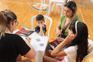 “Moramos em Santa Rosália e, quando soubemos dessa ação, resolvemos participar. Tudo muito bem organizado. Muito bacana mesmo!”, ressaltou o vendedor Rafael Secato, junto da esposa Rita de Cássia, enquanto observavam a filha deles, Maria Fernanda, 9 anos, trocando figurinhas.
