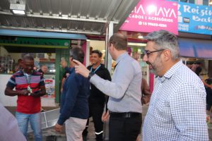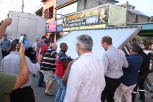 Nesta quarta-feira (19), o prefeito Rodrigo Manga, ao lado do diretor-presidente da Urbes, Sergio Barreto, e do diretor de Transportes da empresa pública, Adriano Brasil, mais o ouvidor-geral do Município, Evandro Bueno, e o vereador Fausto Peres acompanharam a instalação do primeiro novo abrigo no Parque das Paineiras.