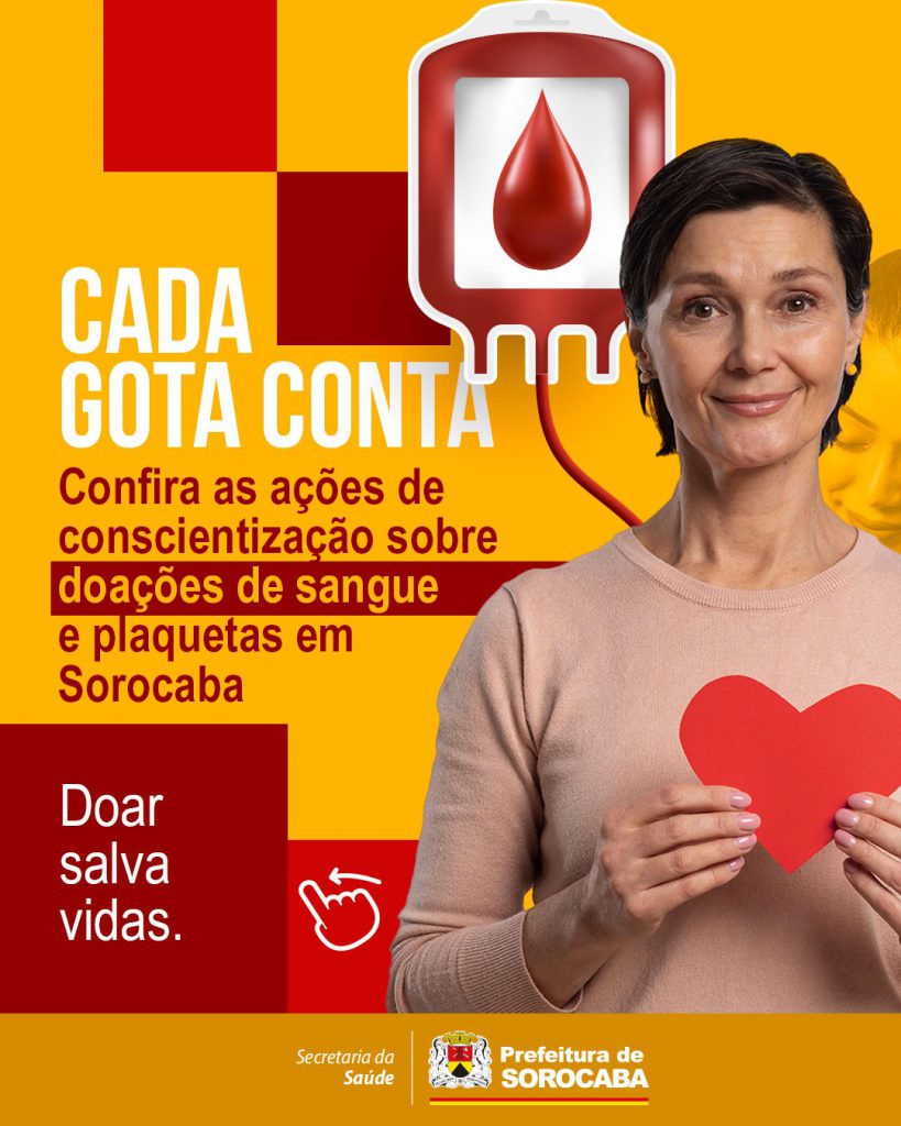A Prefeitura de Sorocaba, por meio da Secretária da Saúde (SES), realizará, ao longo do mês de junho, uma série de ações voltadas à conscientização sobre a importância das doações de sangue e plaqueta. Serão realizadas diversas atividades nas UBSs, bem como palestras, roda de conversa e orientações, além de afixações de cartazes informativos.