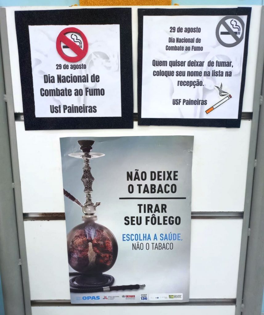 Também voltada para a conscientização sobre a data, a UBS Paineiras realizou um trabalho de exposição visual, com cartazes e materiais informativos sobre o tema do combate ao fumo.