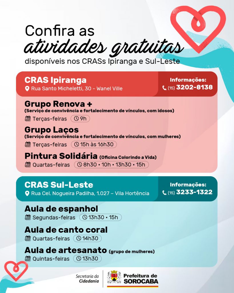 CRAS Sul-Leste – Rua Cel. Nogueira Padilha, 1.027 – Vila Hortência – Informações (15) 3233-1322