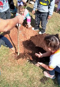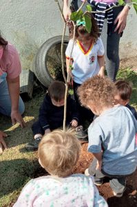 Por fim, nesta sexta-feira (24), o CEI-62 “Monsenhor Antônio Simon Sola”, no bairro Parada do Alto, encerrou a série de plantios da “Semana da Árvore”, com a participação dos alunos da creche.