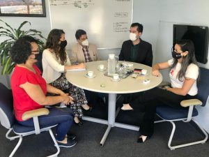 Participaram da reunião a secretária de Governo, Samyra Toledo, e o secretário da Educação, Marcio Bortolli Carrara, que receberam João e Priscila Guariglia, representantes da empresa Rota Uniformes, e Rosana Bastos, da empresa Rosana Bastos Uniformes, para definir questões técnicas e visuais sobre os uniformes para as escolas municipais de Sorocaba.