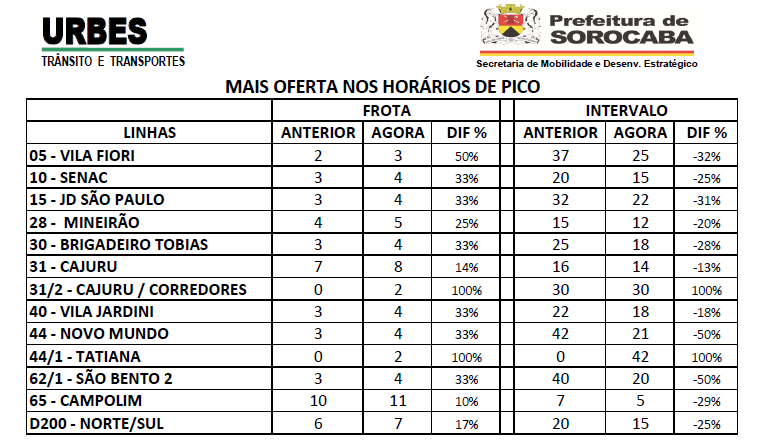 “Mais ônibus e corridas significam menos aglomeração de passageiros. O objetivo é garantir que o serviço essencial de transporte coletivo opere com mais efetividade e minimize o risco de contágio, sem interrupções durante a vigência do estado de calamidade pública decorrente da pandemia de Covid-19”, frisa o prefeito de Sorocaba, Rodrigo Manga.