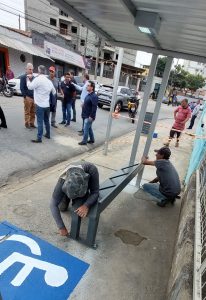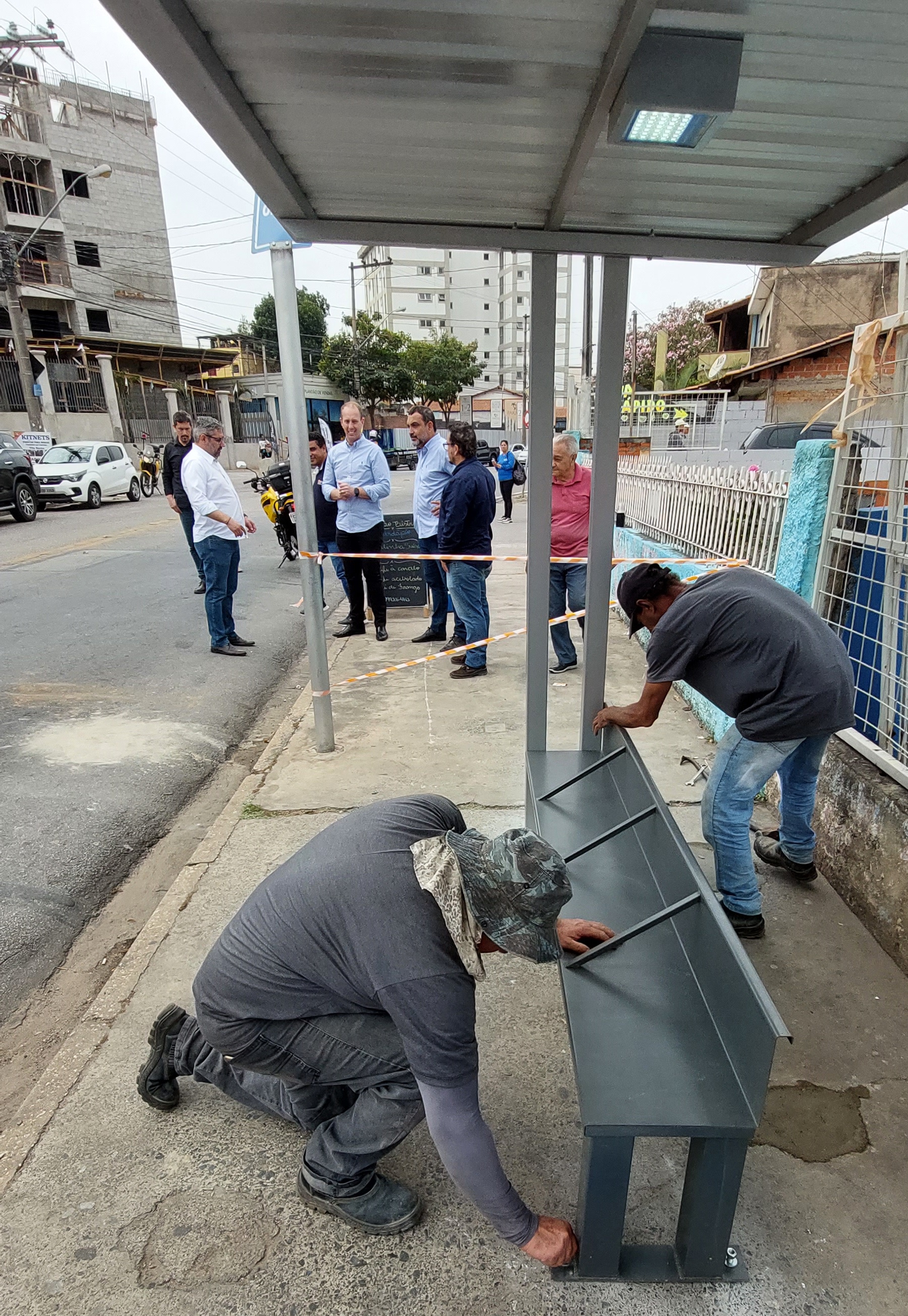 O prefeito Rodrigo Manga e o diretor-presidente da Urbes, Sergio Barreto, além do diretor de Transportes da empresa pública, Adriano Brasil, acompanharam a instalação de um deles, na Vila Barão, na Rua Gonçalves Júnior.