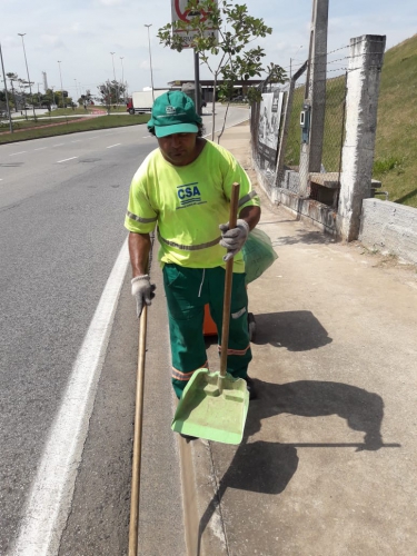Funcionário da CSA varrendo a rua da cidade de Sorocaba